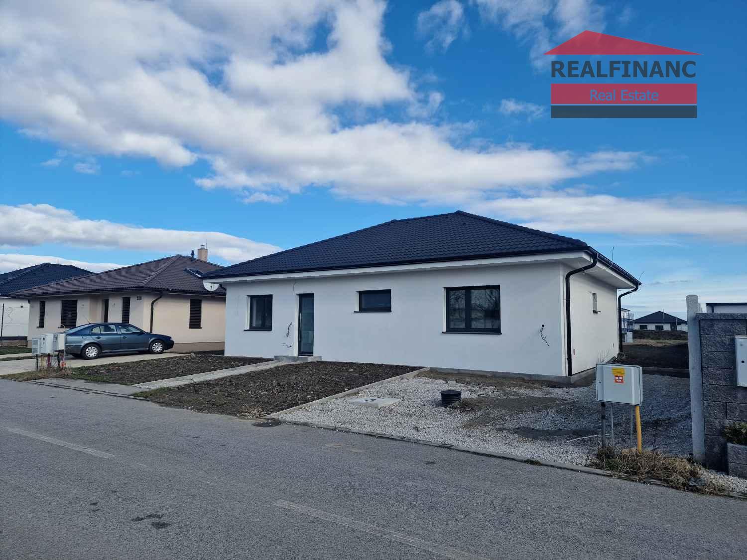 Exteriér: chodník, terasa a 3 x parkovacie miesto so zámkovej dlažby, odvod dažďovej vody, hrubé terénne úpravy a rodinný dom napojený na obecný vodovod, kanalizáciu, elektrinu, plyn + sa pred domom nachádza aj optický internet