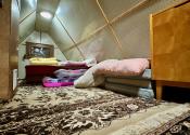 Na prvom poschodí je odpočívacia miestnosť a spiaca časť o rozlohe 39 m2, na uvedenom poschodí je výstup na terasu o rozlohe 55 m2. V spiacej časti sa nachádza aj vstup na druhé podlažie so skladacím schodiskom. Druhé podlažie má rozlohu 17,5 m2.