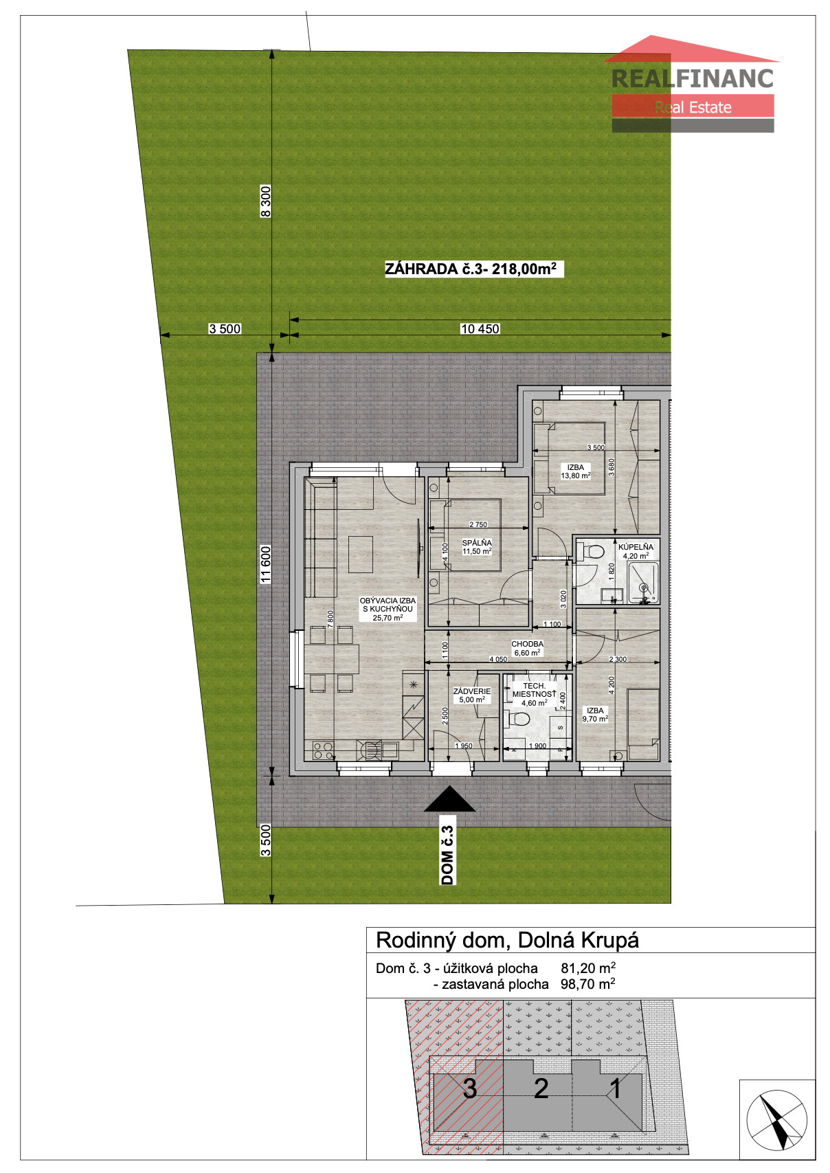 Ponúkame na predaj NOVOSTAVBU 4 izb. rodinného domu (v radovej zástavbe 3 BJ) v obci Dolná Krupá vzdialenej 10 km od mesta Trnava (obec získala v celoslovenskej súťaži Dedina roka 2025 ocenenie v kategórii: Dedina ako maľovaná). Zastavaná plocha je 99m2, úžitková plocha 81,2m2. Záhrada s terasou je orientovaná na slnečnú stranu a má rozlohu 218m2.