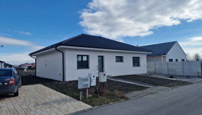 Exteriér: chodník, terasa a 3 x parkovacie miesto so zámkovej dlažby, odvod dažďovej vody, hrubé terénne úpravy a rodinný dom napojený na obecný vodovod, kanalizáciu, elektrinu, plyn + sa pred domom nachádza aj optický internet