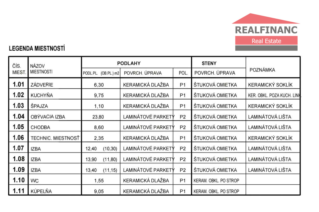 Dispozične pozostáva z vstupnej chodby ( zádverie), obývacej izby prepojenej s kuchyňou, 3 samostatných izieb, špajza, chodba, technická miestnosť, samostatné wc, kúpeľňa s vaňou, sprchovým kútom a druhým wc....