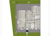 Dispozičné riešenie: vstupná chodba so vstupom na povalu s odkladacím priestorom (cca 20m2), kuchyňa prepojená s obývačkou so vstupom na terasu, technická miestnosť s WC a priestorom pre práčku a sušičku, kúpeľňa s WC (možnosť výberu medzi vaňou a sprchovacím kútom), 3 izby (dve orientované do záhrady so vstupom na terasu). V izbách orientovaných do záhrady boli použité veľkoformátové okná ktoré zabezpečujú dostatok denného svetla.